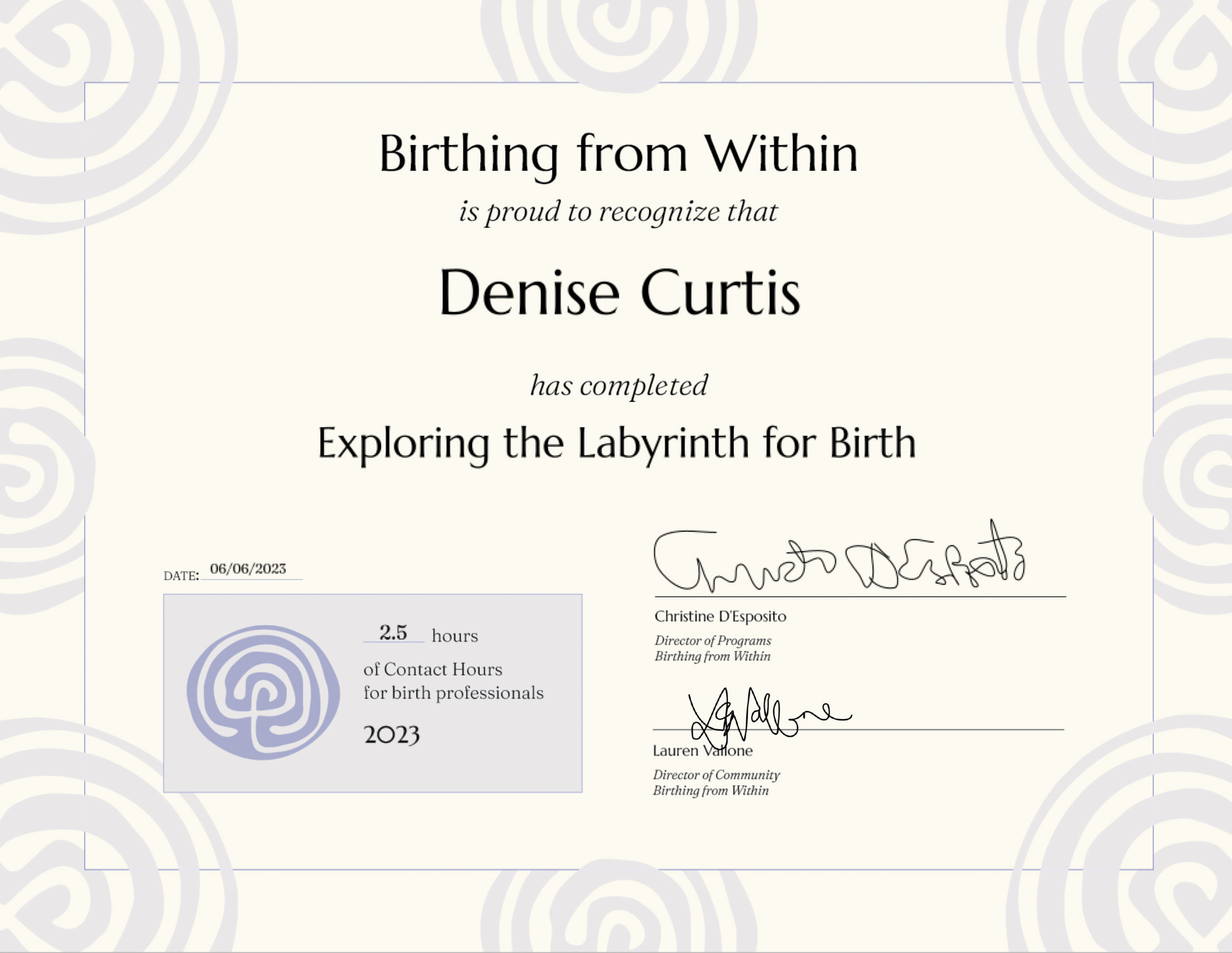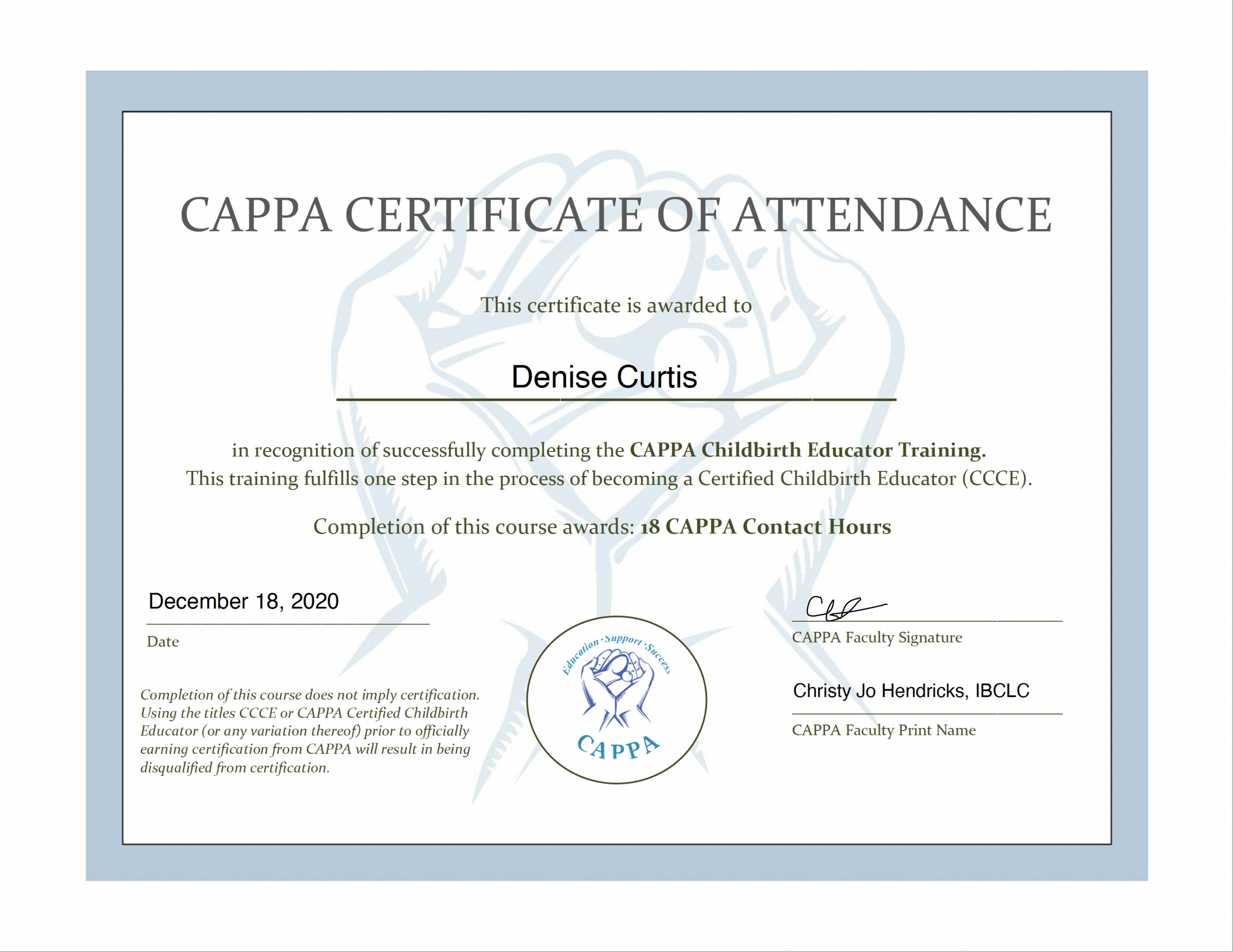 - Certified Labor Doula (CAPPA)