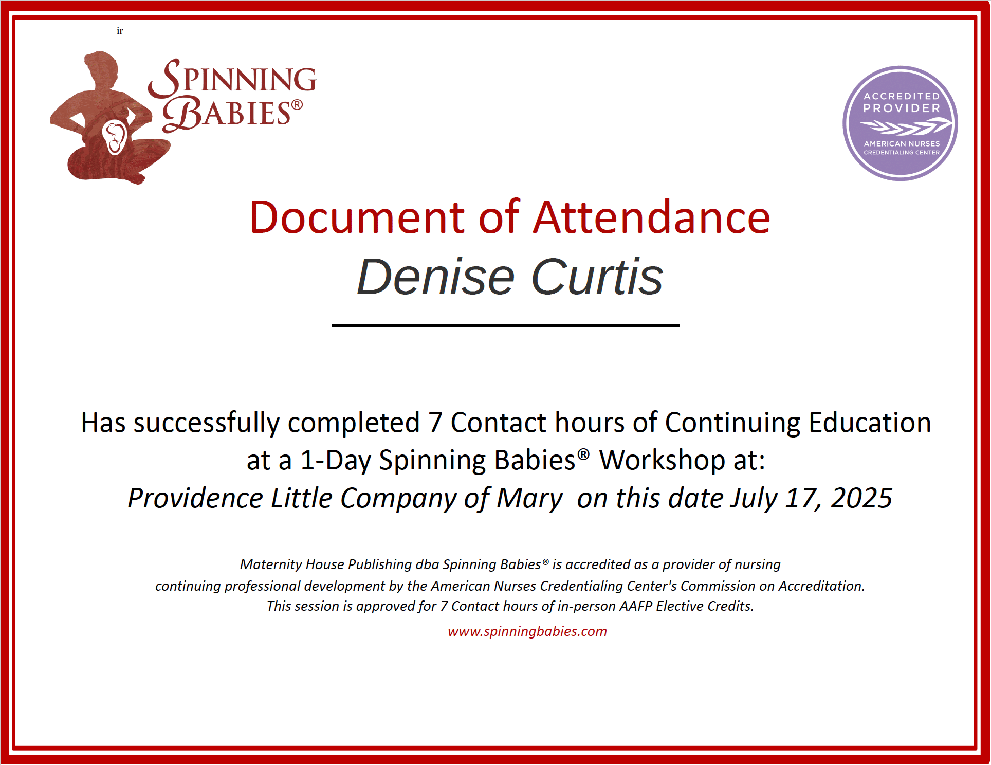 - Certified Postpartum Doula (CAPPA)
